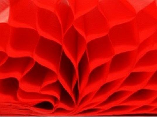 Bibuła przestrzenna Kolor: czerwony Format 23x33 a 5 ark. Bibuła przestrzenna ,to sklejonych w specjalny sposób kilkadziesiąt( 30..42 ) arkuszy bibuły gładkiej ,które rozciągane tworzą przestrzenną strukturę z przekrojem przypominającym plaster miodu.Jest doskonała do tworzeniakompozycji przestrzennych ,rozchylanych kartek z życzeniami itp