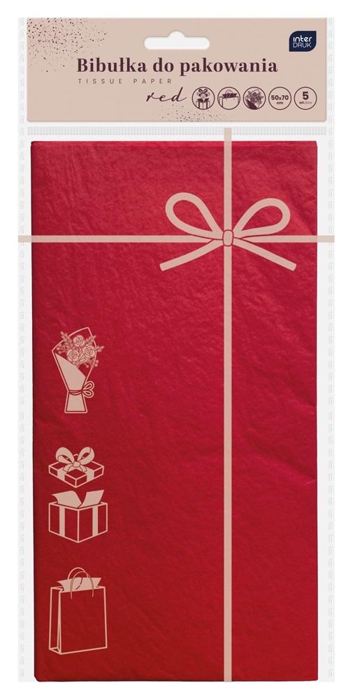 Bibułka do pakowania 50x70cm 5 arkuszy czerwona