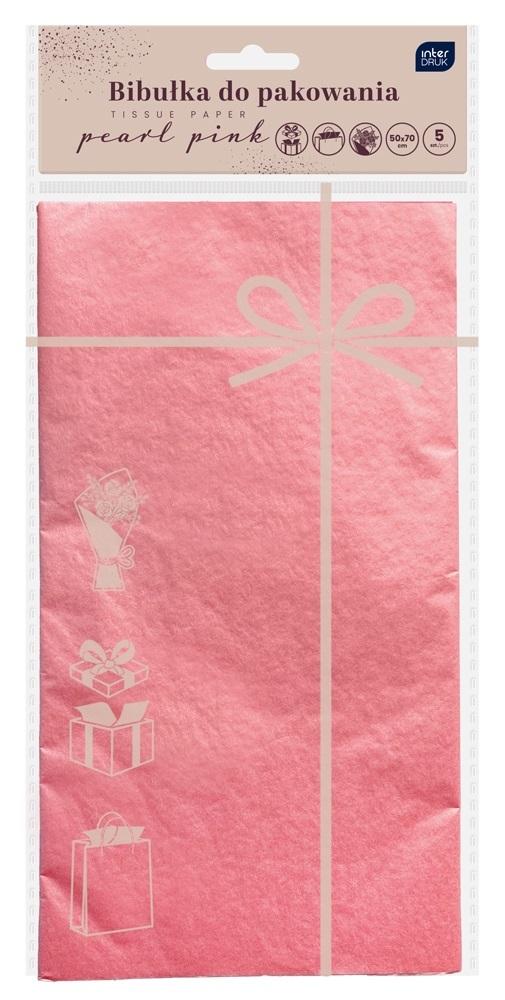 Opakowanie Bibułka do pakowania 50x70cm 5 arkuszy perłowy róż