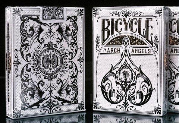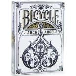 Stworzona przez słynną Theory11. Bicycle Archangels to inspirowana mitstycyzmem, ręcznie stylizowana talia kart, która prezentuje nowy poziom elegancji. Każda talia wykonana jest z własnego, unikatowego papieru oraz powlekana specjalistycznym tworzywem. Dzięki temu klienci od wielu lat ufają produktom Bicycle. Wyłączną cechą karty Bicycle jest wykończenie kart metodą „Air Cushion”. Ta sekretna formuła sprawia, że karty Bicycle mają dłuższą żywotność, łatwiej się je tasuje, rozdaje co znacznie uprzyjemnia karcianą rozgrywkę! Talia 55 kart w rozmiarze pokerowym 63 x 89mm (52 + 2 jokery + info card) Standardowy indeks na przeciwległych rogach awersu.