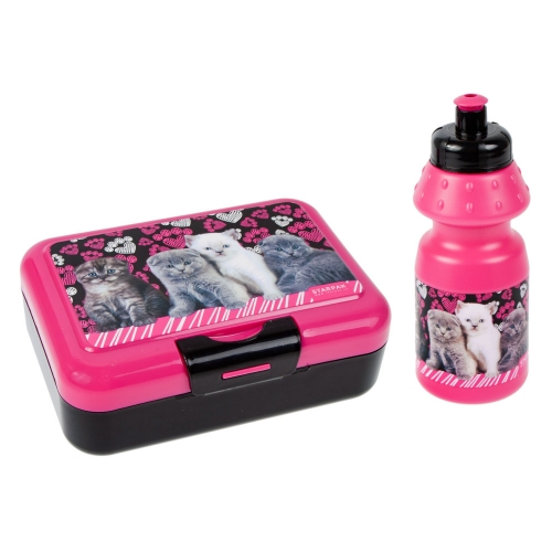Bidon 350ml + pudełko śniadaniowe Kotki