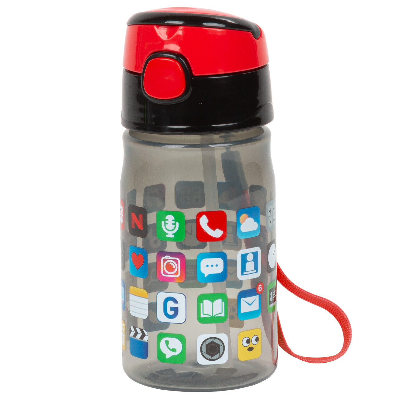 Przezroczysty bidon z nadrukiem o pojemności 360ml.