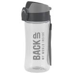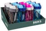 Bidon o pojemności 400 ml wykonany z tritanu, łatwy w otwieraniu o ergonomicznym kształcie. Posiada wygodny uchwyt z materiału. Mix kolorów - szary, różowy i niebieski. Wybierane losowo.