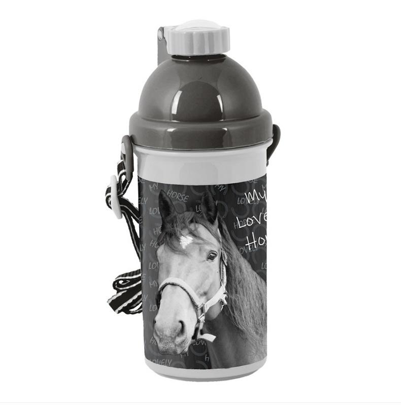 Bidon Paso Horse czarno-szary o pojemności 500 ml. Produkt jest wyposażony w regulowany pasek, dzięki któremu można zawiesić pojemnik na szyi. Pasek możne być odpinany w zależności od potrzeb użytkownika. W bidonie Paso można przechowywać różnego rodzaju napoje o maksymalnej temperaturze 60˚C albo zdrowe smoothie. Produkt posiada certyfikat jakości, jest nietoksyczny i bezpieczny dla dzieci, BPA FREE. Idealnie nadaje się dla dzieci do szkoły, na wycieczkę, zajęcia dodatkowe czy plac zabaw.