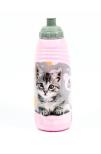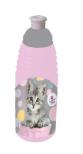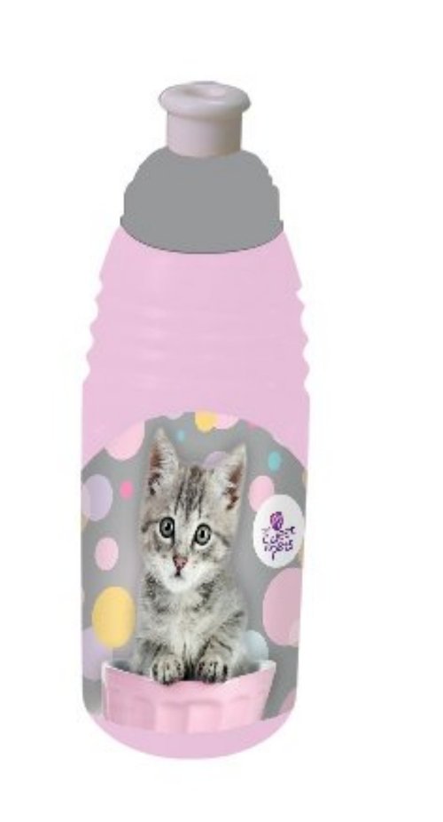 Bidon plastikowy, okrągły. Nakrętka innego koloru niż cały bidon, zakończona sportowym "dziubkiem". Na butelce nadruk wielokolorowy. Pojemność 470ml Szerokość: 6,6 cm Długość: 19,6 cm