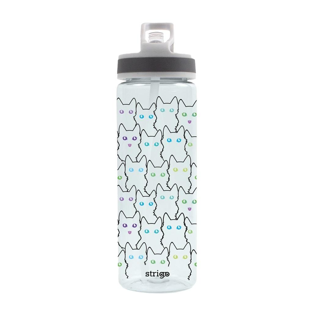 Bidon Strigo z serii Koty. Przeźroczysty bidon z nadrukiem. Posiada słomkę i wygodny ustnik. Nowoczesne oraz praktyczne butelki na napoje, zamykane nakrętką. Znakomicie nadają się zarówno dla uczniów, jak i dla sportowców. Pojemność: 600 ml.