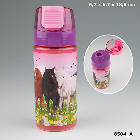 Bidon Miss Melody, 350 ml, wykonany z wysokiej jakości tworzywa SAN (bez BPA), rekomendowane mycie ręczne ze względu na nadruk. Wygodne i higieniczne zamknięcie gwarantuje wygodę używania. Dla wielbicieli koni i nie tylko!