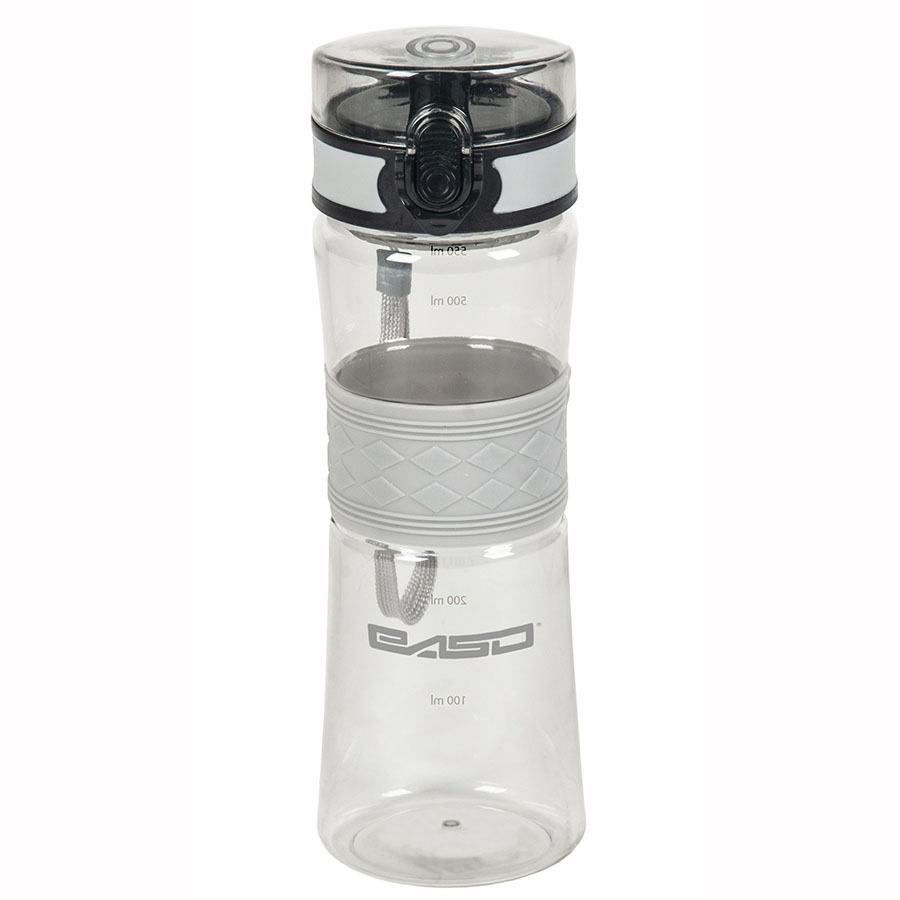 Bidon Grey został wykonany z wyjątkowo wytrzymałego tworzywa Tritanu, który charakteryzuje się lekkością oraz dużą odpornością na przypadkowe uszkodzenia mechaniczne oraz pęknięcia. Dodatkowo istotną cechą Tritanu jest fakt, że nie zmienia smaków i zapachów płynów. Nie zawiera szkodliwych związków Bisfenolu A. Bidon posiada ergonomiczny kształt. Wyposażony jest w specjalne sitko na owoce lub zioła, które można umieścić w jej wnętrzu i wzbogacić smak wody np. cytryną, arbuzem czy miętą. Na boku butelki umieszczona jest miarka w mililitrach. Posiada blokadę chroniąca przed wyciekaniem płynów oraz pasek ułatwiający przenoszenie. Silikonowa opaska na butelce ułatwia trzymanie w ręce. Pojemność bidonu 550 ml. Produkt można myć w zmywarce.