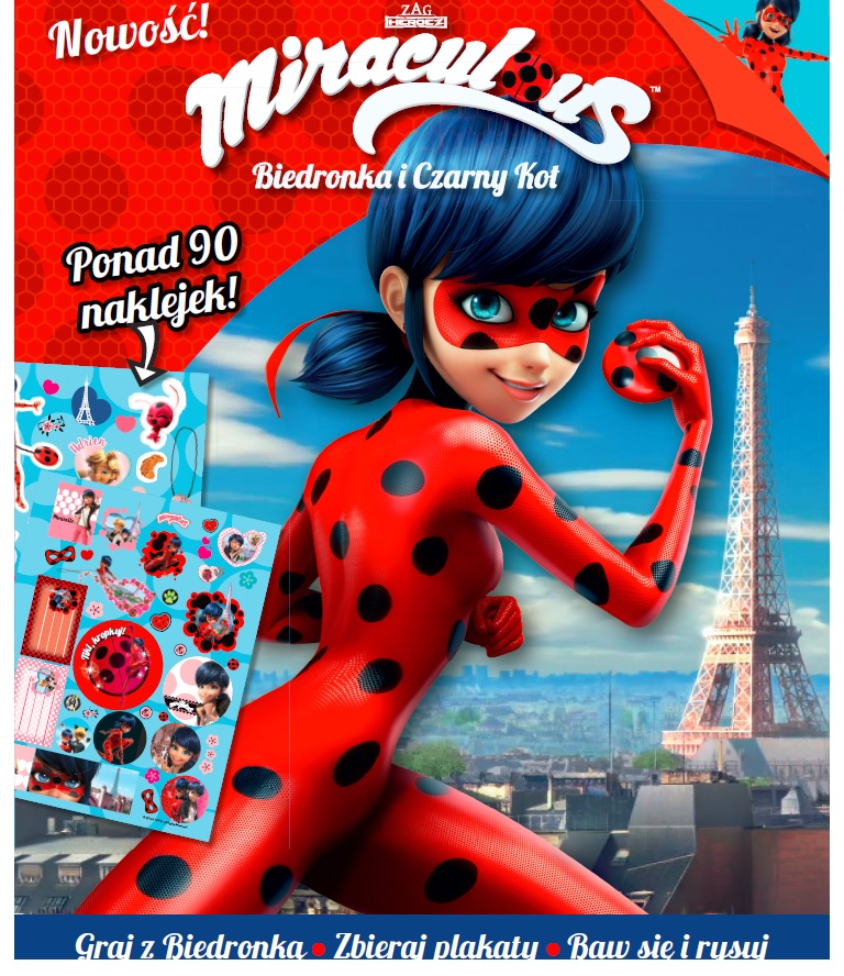 Biedronka i Czarny kot to japońsko-francusko-koreański serial animowany, który od dwóch lat bije rekordy oglądalności! Marinette prowadzi podwójne życie. Jako zwykła nastolatka chodzi do szkoły i kocha się w Adrienie, w ważnych momentach jednak staje się superbohaterką, Biedronką. Nie wie jednak, że drugie wcielenie Adriena to Czarny Kot. W tej czesci znajdziecie naklejki, plakat , gry planszowe.
