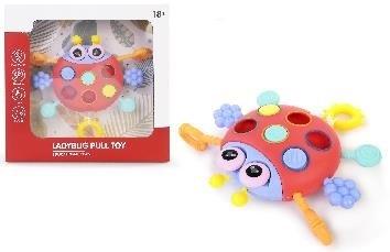 Funkcje: 2 gumowe linki do przeciągania, 2 obrotowe kwiatki z terkotką, mini grę z przesuwaniem guziczków, po pociągnięciu i puszczeniu kółka na lince ruszają się oczy, Pozostałe informacje: wym. zabawki 11 x 14 x 4 cm, wym. opak. 20 x 20 x 5 cm, 18m+