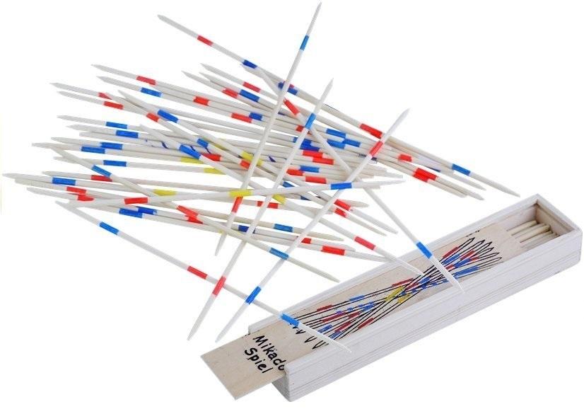 Drewniana gra w bierki - mikado Mikado to gra towarzyska, która zarówno swą budową, jak i zasadami, nawiązuje do klasycznej gry w bierki. Jej nazwa odnosi się do najbardziej wartościowej bierki w zestawie, której pochodzenie oznacza cesarza Japonii. Gra posiada bardzo pozytywny wpływ na uczestników zabawy: pozwala na opanowanie swego ciała, a także uczy sprytu, cierpliwości i koncentracji. To nie wszystko - przynosi bardzo dużo śmiechu i radości, zachęcając całą rodzinę i przyjaciół do wspólnej zabawy. Zasady gry są bardzo proste. Mikado przeznaczone jest dla od 2 do 6 osób. Jeden z zawodników wyciąga bierki z pudełeczka i rozsypuje je na stole. W efekcie powstaje stosik z patyczków, które gracze muszą wyciągać pojedynczo tak delikatnie, by nie poruszyć kolejnych bierek. Jeśli pierwszemu zawodnikowi nie uda się sprostać temu zadaniu, traci on swą kolejkę i próbę podejmuje kolejny zawodnik. Wygrywa ten, który po zsumowaniu wartości zebranych bierek posiada jak największą liczbę punktów. Punktacja obowiązująca w grze mikado: - mikado ze spiralą: 20 punktów, - bierki w paski niebiesko-czerwono-niebieskie: 10 punktów, - bierki w paski czerwono-niebiesko-czerwono-niebiesko-czerwone: 5 punktów, - bierki w paski niebiesko-żółto-czerwone: 3 punkty, - bierki w paski niebieskie-czerwone: 2 punkty. Gra mikado przyniesie frajdę wszystkim członkom rodziny - zarówno dzieciakom, jak i ich rodzicom. Sprawdzi się podczas spotkań towarzyskich z przyjaciółmi, a także w wolnym czasie, który można wykorzystać w rozwijający sposób. Drewniane bierki sprawią, że dzieci zaangażują się w zabawę, co rozwinie ich zdolności manualne i skupienie. Prezentowana gra Mikado przeznaczona jest dla wszystkich powyżej 3. roku życia. Bierki wraz z opakowaniem zostały wykonane z naturalnego tworzywa, jakim jest drewno, co w dużym stopniu wpływa na ich jakość i trwałość. Produkcja zabawki jest zgodna z normą EN 71, co odpowiada za bezpieczeństwo płynące z użytkowania. Wymiary elementów gry: - bierki: 18 cm. Wymiary opakowania: - 19,5 cm x 4,5 cm x 2,5 cm.