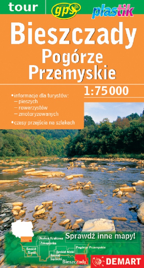 Bieszczady oraz Pogórze Przemyskie to mapa turystyczna plastikowa, dwustronna, w skali 1:75 000. Mapa ta zwiera informator krajoznawczy dla turystów pieszych, rowerowych, zmotoryzowanych oraz czasy przejścia na szlakach turystycznych. Z kolei Pogórze Przemyskie zawiera szlaki turystyczne i tematyczne, ścieżki przyrodnicze i dydaktyczne oraz szlaki rowerowe i kajakowe.