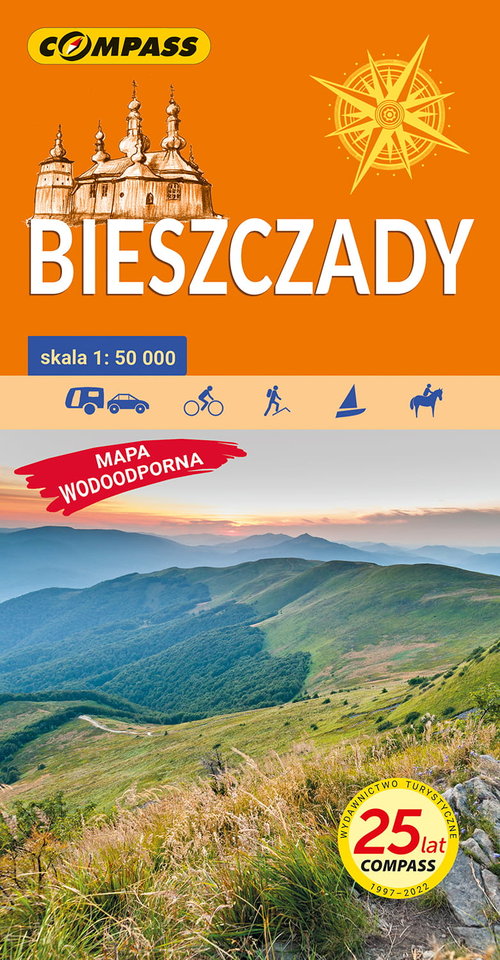 Bieszczady to najpopularniejsza mapa w naszej ofercie - nasz produkt flagowy, o czym świadczy już XXIV wydanie. Jest to mapa dwustronna w skali 1:50'000. Niniejsza mapa jest wodoodpornym wariantem mapy papierowej (dwustronnie pokryta folią). Jest trwała, odporna na deszcz, zniszczenia, nie przeciera się w miejscu łamania.