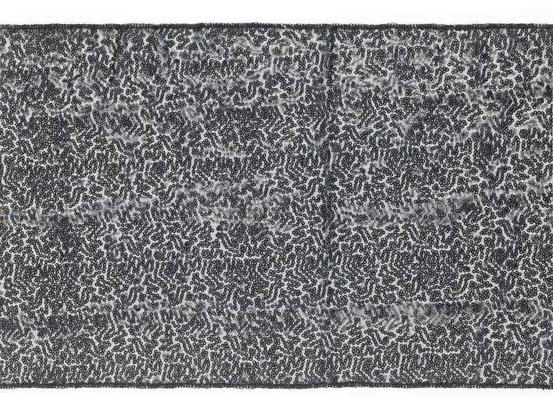 Bieżnik z siateczki dekoracyjnej z cekinami w kolorze czarnym, szerokość ok. 30 cm, długość ok. 5 m.