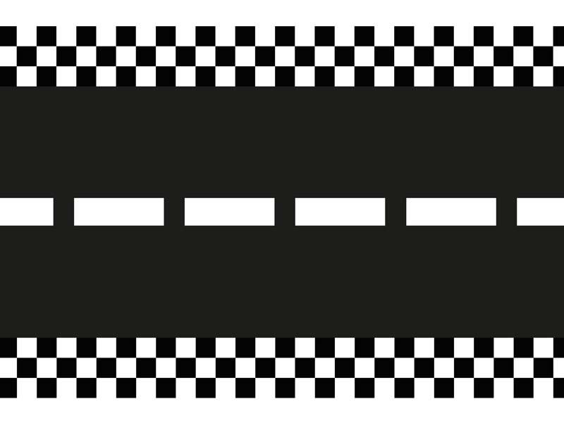Bieżnik z fizeliny z nadrukiem w kolorze biało-czarnym Tor wyścigowy. Szerokość ok. 40 cm, długość ok. 5 m.
