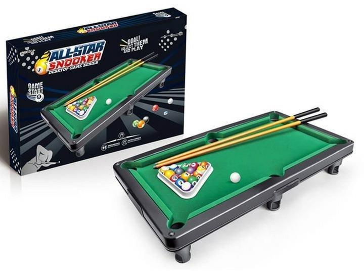 Zestaw zawiera: Stół do bilarda- 1szt., 16 kolorowych bil, 2 kompletne kije + 1 trzonek kija zapasowy, trójkąt