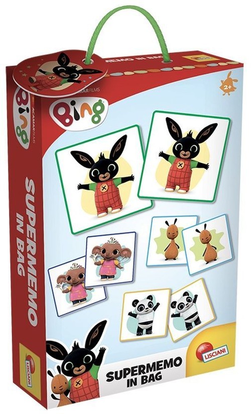 Zestaw kafelków do memorii. Kafelki dostosowane są dla dzieci od drugiego roku życia i są wykonane z trwałej tektury. Gra memoriato gra rozwijająca pamięć. Zadaniem dzieci jest dopasowywanie do siebie par obrazków z postaciami znanymi z kreskówki Bing.