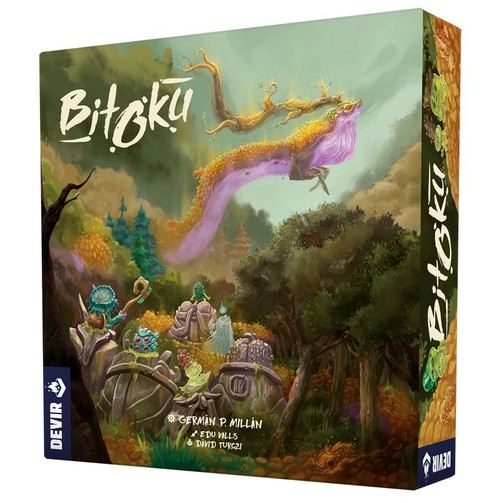 Bitoku to średniej ciężkości gra euro z mnóstwem negatywnej interakcji i fenomenalną szatą graficzną inspirowaną japońską mitologią. Jej autorem jest Germán P. Millán (Kingdom Defenders), a twórcą trybu solo — Dávid Turczi (Tekhenu, Tawantinsuyu, Anachrony). Wielki Duch, opiekun pradawnych Kniei, szykuje się do odejścia. Na jego miejsce zostanie wybrany jeden z duchów Bitoku, lecz by dostąpić tego zaszczytu, będzie on musiał wykazać się nieprzeciętnymi zasługami. Gra toczy się na przestrzeni czterech rund podzielonych na cztery fazy — pory roku. Podczas każdej z nich będziecie zdobywać kolejne punkty z wielu dostępnych akcji, korzystając z pomocy Yokai — Opiekunów Kniei. Yokai reprezentowani są przez kości i karty, dlatego też w Bitoku zarządzać będziecie dwoma rodzajami robotników. Ten z was, który będzie robił to najrozważniej, dotrze do najdalszego miejsca na Ścieżce Duchów i przejmie schedę po Wielkim Duchu Kniei. Zawartość: 1 PLANSZA GRY 14 wymiennych elementów planszy (do umieszczenia we wgłębieniach) 4 plansze gracza (po 1 dla każdego gracza) / plansze Tengu (tryb solo) 4 chorągwie / „+100” PZ (po 1 dla każdego gracza) 12 kości (po 3 dla każdego gracza) 174 ZNACZNIKI 155 KAFELKÓW 111 KART 58 Amuletów (+1, +2, +3) 32 znaczniki mnożników Zasobów (×3) 12 znaczników Hikaru 1 instrukcja 4 arkusze pomocy Wiek graczy: 14+ Liczba graczy: 1-4 Czas rozgrywki: 120 minut