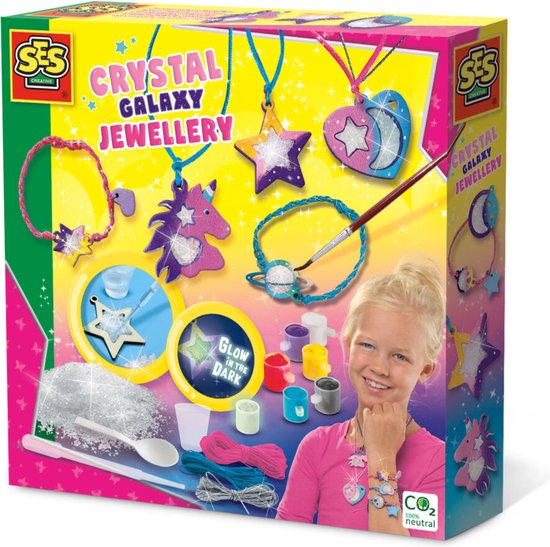 Dzięki galaktycznej biżuterii kryształowej dzieci mogą tworzyć piękną biżuterię z motywem galaktyki.