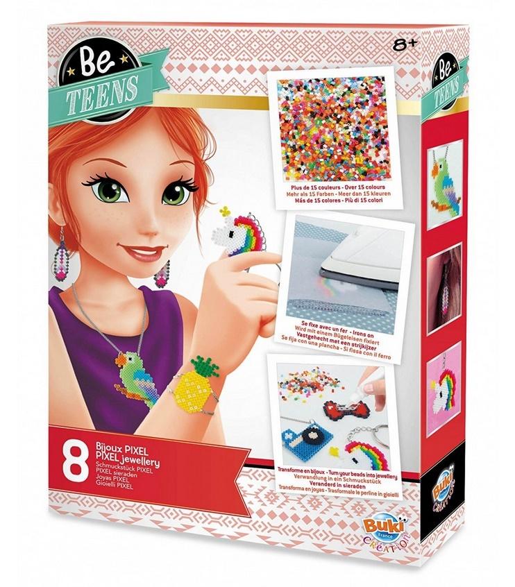 Zabawa polega na własnoręcznym tworzeniu biżuterii z malutkich koralików do prasowania; wystarczy ułożyć je na podstawce z wypustkami w określony wzór i zaprasować