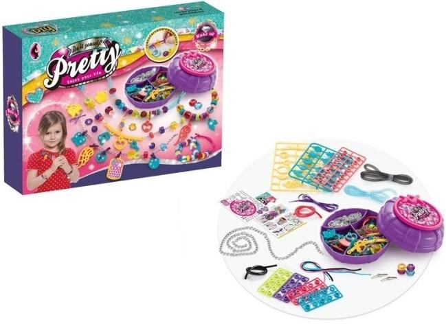 Zestaw do tworzenia biżuterii "Pretty - Design Your Life" to wspaniała propozycja dla każdej małej artystki. W kolorowym opakowaniu znajduje się bogaty wybór koralików, zawieszek, sznureczków i innych ozdób, które pozwolą stworzyć unikalne bransoletki, naszyjniki czy pierścionki. Wszystkie elementy zapakowane są w praktyczne, zamykane pudełko w kształcie muszelki, dzięki czemu łatwo utrzymać porządek. To świetna zabawa i jednocześnie sposób na rozwijanie kreatywności, koncentracji oraz zdolności manualnych dziecka.