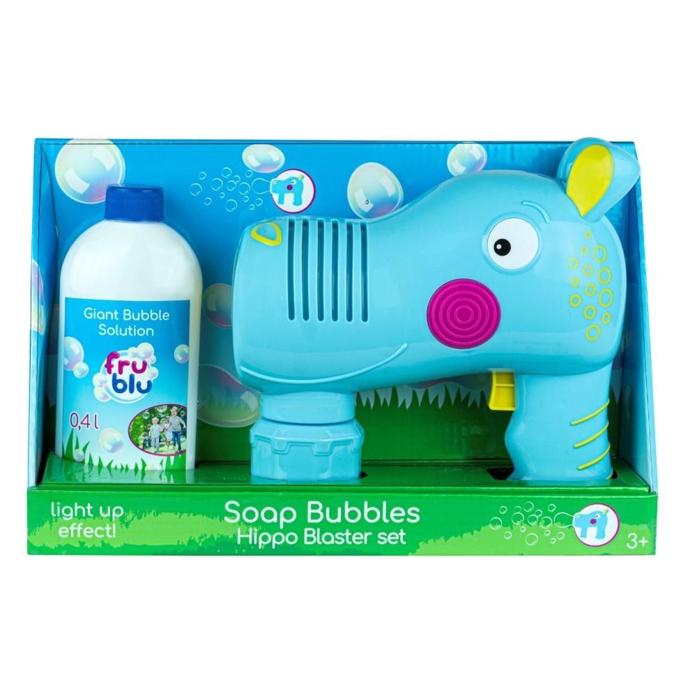 Zestaw Hippo Blaster ma przyjazny wygląd i jest bardzo funkcjonalny. Urządzenie jest łatwe w obsłudze, daje efekt świecenia i zabezpiecza przed rozlaniem płynów. Zestaw zawiera Hippo Bubble Blaster oraz butelkę 0,4 l z płynem do uzupełniania bąbelków. Wymagane baterie: 3 x AA Baterie nie są dołączone do zestawu. Zabawka przeznaczona jest dla dzieci powyżej 3 roku życia.