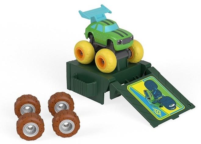 Każda ciężarówka Monster Truck jest wyposażona w dwa zestawy wyjątkowych kół, które można z łatwością demontować i zakładać, oraz w dodatkowy element, który można zamocować z tyłu pojazdu.