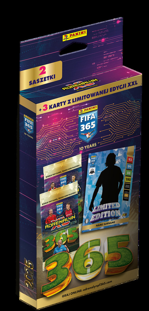 Panini FIFA 365 Adrenalyn XL™ w 2024 świętuje jubileusz dziesięciolecia! Kolekcja prezentuje najlepsze drużyny i gwiazdy największych światowych lig piłkarskich, a także nowe treści, kategorie kart i specjalne materiały, co sprawia, że zawsze każdego roku ta kolekcja jest ekscytująca! Począwszy od obiecujących graczy Rising Stars po uznanych piłkarzy Top Masters, Panini FIFA 365 Adrenalyn XL™ zawiera wszystko czego może oczekiwać fan piłki nożnej a nawet więcej! Cała kolekcja zawiera ponad 400 kart z wizerunkami piłkarzy, wydrukowanych na różnych materiałach. W skład kolekcji wchodzą również karty z limitowanej edycji. Blister XXL zawiera 2 saszetki z kartami (12 kart) oraz 3 karty XXL z limitowanej edycji.