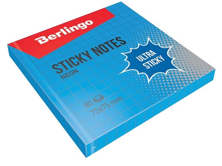 Bloczek z karteczkami samoprzylepnymi, wzór w linie w kratkę, typu Ultra Lepki o wymiarach 75x75 mm i podwyższonej przyczepności 25 N/m. Wykonany z papieru o gramaturze 75 g/m2. Warstwa podkładowa, która zatrzymuje klej podczas ponownego klejenia, pozwala na nie pozostawianie śladów na powierzchni i ponowne wykorzystanie karteczki. Na powierzchni karteczki jest specjalna powłoka zapobiegająca zwijaniu się oraz słuzy do optymalizowania wygodnego pisania. karteczka idealna do przyklejania do różnego rodzaju powierzchni. Ilość karteczek 80 szt., kolor neon - niebieski. Opakowanie w przezroczystą folię z możliwością szybkiego otwarcia.