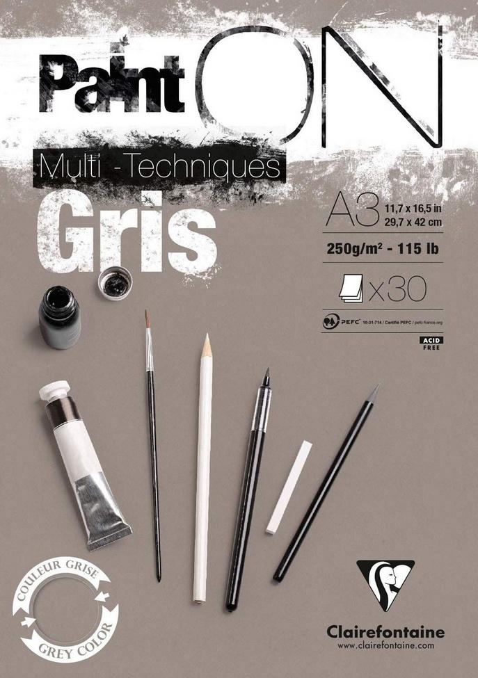 Papier Paint`ON(R) do różnych technik malarskich (Mix-Media), o strukturze lekko ziarnistej. Kolor szary.