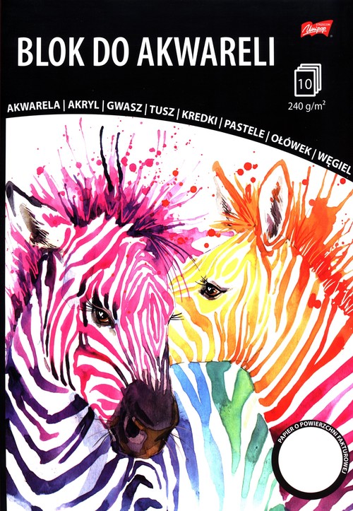 Cechy produktu: papier bezkwasowy o powierzchni fakturowej, odporny na wielokrotne wymazywanie i poprawki korekcyjne do akwareli, gwaszu, akrylu, tuszu, rysunku kredkami, pastelami, ołówkiem i węglem ilość kartek: 10 gramatura papieru: 240 g/m2