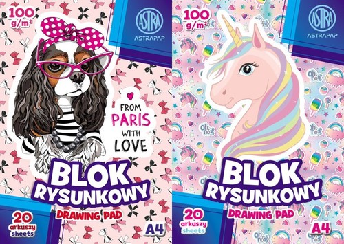Opakowanie Blok rysunkowy A4 20 arkuszy Puppy&Unicorn 10 sztuk mix