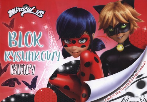 Blok rysunkowy biały, format A4, 20 kartek, na pierwszej stronie kontury do pokolorowania, kolorowa przednia okładka, tył szara tektura, klejony z boku.