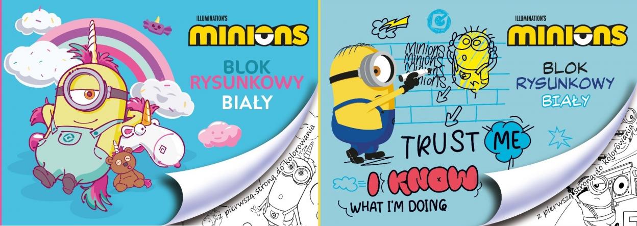 Pierwsza strona posiada kolorowankę z motywem Minionków.
