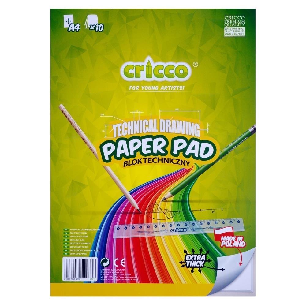 Blok techniczny Cricco w formacie A4 z papierem w kolorze białym. 10 arkuszy jednostronnie klejonych o gramaturze 170 g. Doskonały do wszelkich wyzwań młodych artystów. Wyprodukowane w Polsce.