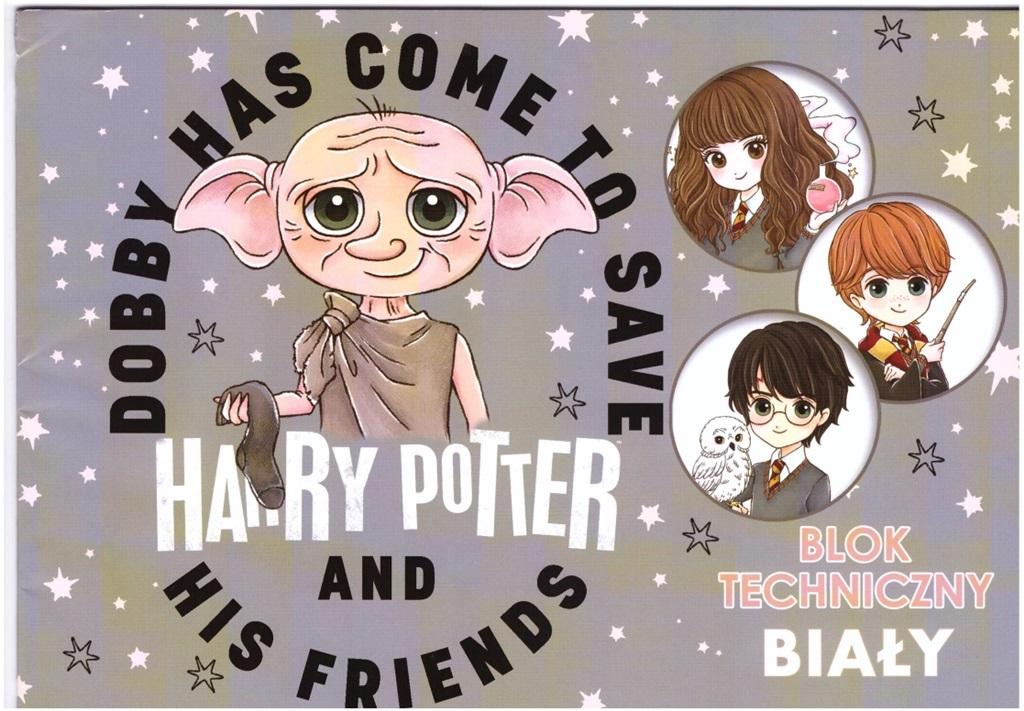 Blok techniczny w formacie A4, 10 kartek, biały, motyw Harry Potter.