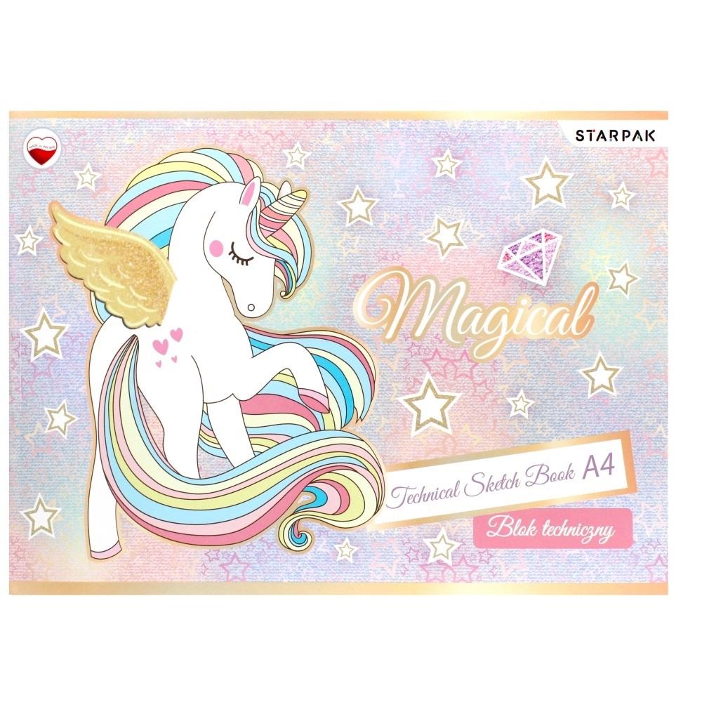 Blok techniczny w formacie A4 z 10 białymi kartkami z kolekcji STARPAK Unicorn . Okładka ozdobiona kolorową i inspirującą grafiką. Zapoznaj się również z innymi produktami Starpak dla biura i szkoły! Produkt przeznaczony dla dzieci w wieku: 3+