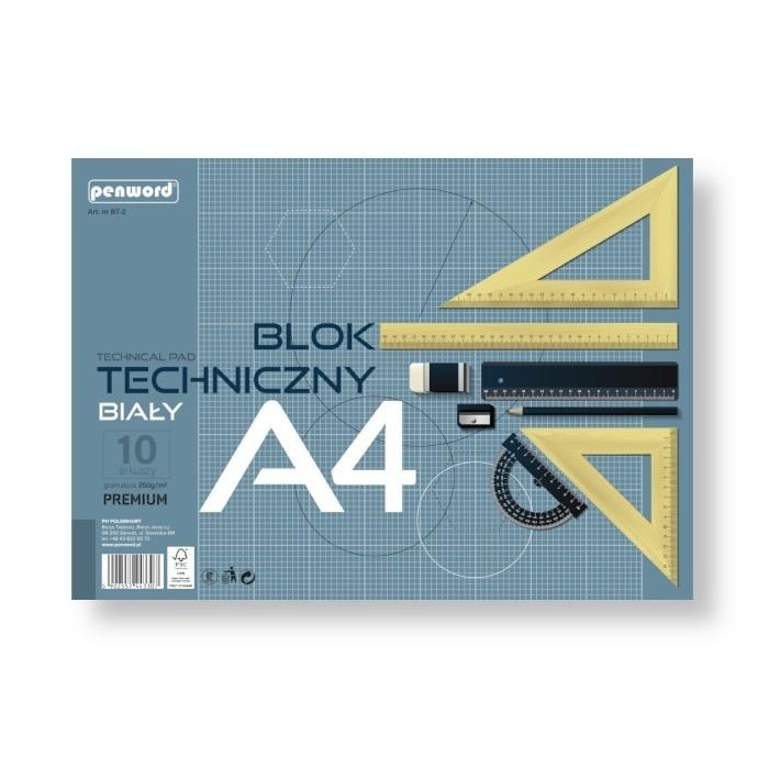Blok techniczny A4 biały bt-2 250g 10 arkuszy premium