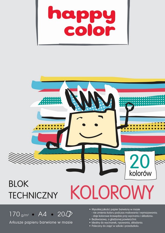 Blok techniczny HAPPY COLOR kolor A4 170g 20 arkuszy HA 3717 2030-09