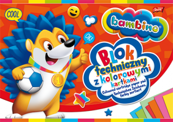 Blok techniczny z kolorowymi kartkami BAMBINO A4, 10 kartek.