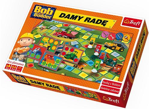 Bob Budowniczy potrzebuje pomocników na placu budowy. Gracze pomagają Bobowi wykonać zadanie, poruszając się po planszy pionkami z wizerunkami jego przyjaciół. Po drodze muszą zdobyć cztery żetony z narzędziami – kto dokona tego jako pierwszy, zostanie zwycięzcą. Na planszy znajdują się pola specjalne, które ułatwią lub utrudnią graczom zadanie. Nagrodą w grze jest nie tylko tytuł zwycięzcy, ale także wielka wdzięczność Boba. Damy radę? Damy radę! Piękna grafika, wesoła rozgrywka i proste zasady gry sprawią, że chętnie zagrasz z rodziną i przyjaciółmi. Zawartość pudełka: Plansza 4 planszetki pojazdów 16 żetonów 4 pionki 4 podstawki pod pionki Kostka Instrukcja Wiek: 5+ 2-4 graczy 20-30 minut