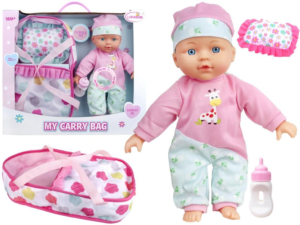 Każda mała dziewczynka marzy o lalkach, nawet kolekcjonuje różne rodzaje. Zabawa lalką rozwinie wyobraźnię, motorykę i zdolności manualne dziecka. Dziewczynka będzie bardziej odpowiedzialna i emocjonalna, angażując się w opiekę nad swoim słodkim bobasem. Opiekowanie się lalką ma wymiar edukacyjny, który zaprocentuje w przyszłości. Wiele dziewczynek marzy o lalce i uwielbia naśladować swoje kochające, troskliwe i opiekuńcze mamusie - nasz bobas pomoże dziewczynce wczuć się w tę ważną rolę. Lalka ubrana jest w piękne kolorowe ubranko. Na głowie bobasa znajduje się słodka czapeczka. Wszystkie ubranka mają kolor jasnego różu. Całość idealnie pasuje do siebie i wygląda wprost uroczo. Lalka ma ruchome ręce i nogi oraz główkę. Można ją umieścić na siedząco lub leżąco. Ubranko jest zdejmowane, co pozwoli na wymianę garderoby. Całość idealnie pasuje do siebie. Po naciśnięciu na tors lalki usłyszymy dźwięki charakterystyczne dla małego dziecka: płacz, gaworzenie, słowo " mama" itd. Przy każdym naciśnięciu zaskoczy dźwiękami. Lalka ma ruchome ręce i nogi, ubranko jest zdejmowane, co pozwoli na wymianę garderoby. Prezentowana lala wykonana jest z atestowanych materiałów wysokiej jakości, świadczących o bezpieczeństwie płynącym z jej użytkowania, a także długiej żywotności zabawki. Elementy zestawu: - laleczka bobas różowa - butelka - nosidełko - poduszeczka Wymiary nosidełka: 16 cm x 33 cm x 6 cm Długość lalki: 30 cm Wymiary pudełka: 38 cm x 32 cm x 10 cm Zabawka zasilana jest trzema bateriami LR44 (w zestawie). Lalka przeznaczona jest dla dzieci powyżej 18 miesiąca życia. Zabawka posiada certyfikat CE i jest zgodna z normą EN 71. Bobas zapakowany jest w kolorowe pudełko z przezroczystą witrynką, dzięki czemu nadają się na prezent dla dziecka.