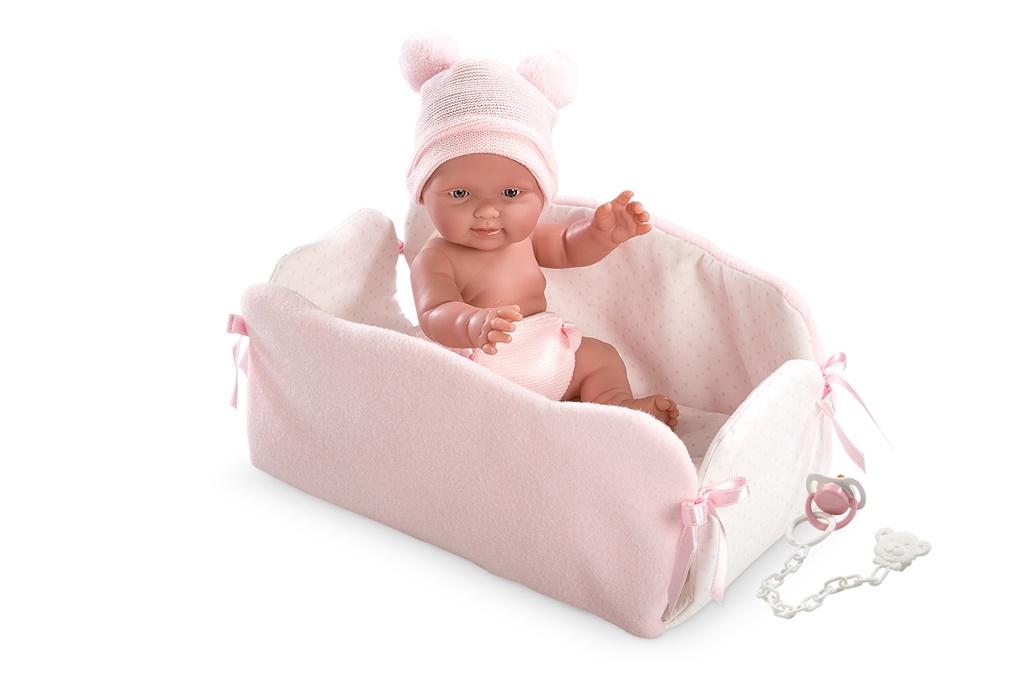 Śliczna lalka, kształtem i mimiką do złudzenia przypomina małą dziewczynkę. Każda młoda dama będzie zachwycona lalkami firmy Llorens z uwagi na dbałość o szczegóły oraz wysoką jakoś wykonania. Lalka została wykonana z przyjemnego w dotyku winylu, brzuszek wypełniony jest miękką wyściółką, a ubranka uszyte są z wysokiej jakości materiałów. Kończyny oraz głowa poruszają się wokół własnej osi, a oczy są na stałe otwarte. Główkę naszej lalki zdobią kruczo czarne włoski i czerwona czapeczka z pomponikiem. Valeria Azjatka ubrana została w beżową sukienkę z czerwoną kokardką, pasujący do kompletu sweterek, a jej nóżki ozdabiają botki z czerwonym pomponem.