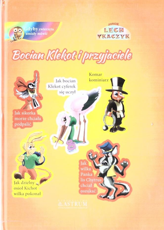 Dlaczego bocian, w bajce Jak Bocian Klekot cyferek się uczył, postanowił nauczyć się liczenia? Albo dlaczego sikorka, w bajce Jak sikorka morze chciała spalić, postanowiła spalić morze, wierząc, że można zapalić wodę? Czy to w ogóle możliwe? A czy wiecie dlaczego komar, w bajce Komar Kominiarz, został kominiarzem i jak pomagał zwierzętom czyścić kominy, aby piece nie dymiły i powietrze było zdrowe i świeże? Czy wiecie dlaczego nie wolno zadzierać nosa? I jak dzielny osioł, z bajki Jak Dzielny Osioł Kichot wilka pokonał, przechytrzył wilka? Czy naprawdę lis jest taki chytry i cwany jak o nim myślimy? I dlaczego lisowi, w bajce Jak Wilka Panka Lis Chytrus chciał oszukać, nie udało się oszukać wilka? Co jest najważniejsze w życiu? Często niezwykle trudno odpowiedzieć na te najprostsze pytania naszych pociech. Plączemy się i gubimy w wyjaśnieniach, a wystarczy sięgnąć po odpowiednią lekturę. Wychodząc naprzeciw oczekiwaniom, Wydawnictwo ASTRUM przygotowało serię „Gdyby zwierzęta umiały mówić”. Każda bajka zawiera mądrą, edukacyjną historię oraz ciekawe ilustracje wykonane przez Rafała Kado. Autor bajek - Lech Tkaczyk - w sposób prosty, żywy i zabawny uczy dzieci, jak dobierać przyjaciół, dlaczego nie wolno oszukiwać i kraść, czym można zasłużyć na nagrodę, jakie korzyści daje wytrwała praca. Z pewnością warto do nich zajrzeć! Lech Tkaczyk - absolwent Wydziału Technologii Żywności Akademii Rolniczej we Wrocławiu i Międzynarodowych Studiów Doktoranckich na Akademii Ekonomicznej we Wrocławiu. Poeta, autor kilku tomików poetyckich wydanych wraz z płytami z poezją śpiewaną do jego tekstów - w tym przez artystkę Piwnicy Pod Baranami Beatę Czernecką ( tomik poetycki i płyta muzyczna Anioły Codzienności). Jest autorem tekstów do ponad 150 piosenek wydanych na płytach dla najmłodszych i dla dorosłych. Lech Tkaczyk napisał i wydał w postaci książek, audiobooków, słuchowisk, e-booków ponad 100 bajek dla dzieci. Słuchowiska i audiobooki nagrywane są przez aktorów scen polskich, a także przez profesjonalnych lektorów. Autor pisze książki klasycznym wierszem i nie zamierza zmieniać stylu na prozatorski. Uczestniczy w spotkaniach autorskich z dziećmi w szkołach, przedszkolach, bibliotekach itd. Za swoją działalność na rzecz dzieci otrzymał Medal Komisji Edukacji Narodowej. Fragmenty spotkań i czytanych przez niego książek można zobaczyć na YouTube i innych portalach społecznościowych, na których jest bardzo aktywny. Na Facebooku prowadzi wiele grup poetyckich promujących twórczość autorów. Jako prezes i współwłaściciel Wydawnictwa Astrum wydaje cykliczne antologie poetyckie i prozatorskie pozwalające zaistnieć w księgarniach całego kraju autorom reprezentującym różne style uprawianej przez nich poezji czy beletrystyki. Lech Tkaczyk ma wiele pasji. Nadal działa aktywnie - pisze książki dla dzieci i dorosłych, nagrywa słuchowiska, pisze wiersze. Kocha poezję oraz piosenkę poetycką.