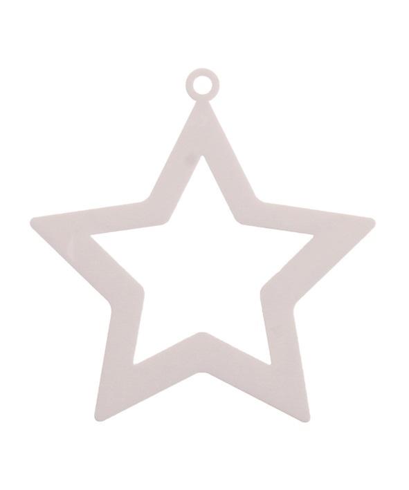 Zawieszka, bombka w kształcie gwiazdy wykonana z białej plexi. Średnica 8cm, wysokość całkowita 9cm. W opakowaniu 1szt