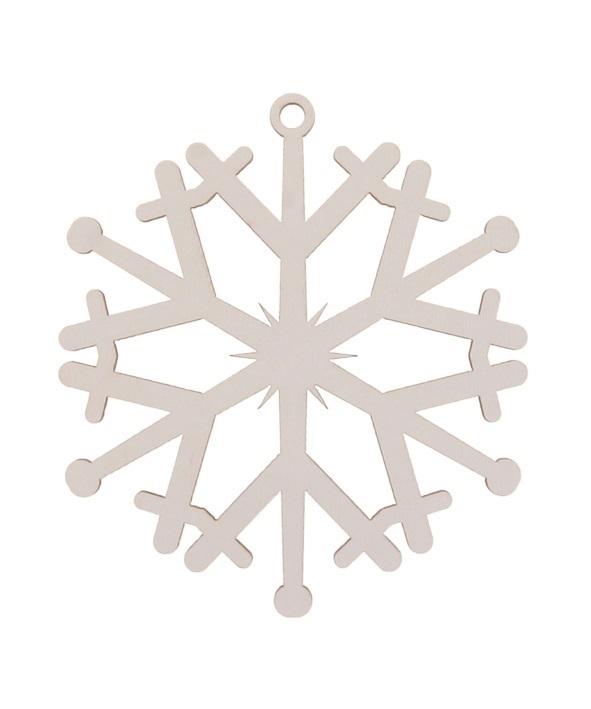 Drewniana śnieżynka biała. Średnica 8cm, wysokość całkowita 9cm. W opakowaniu 3szt