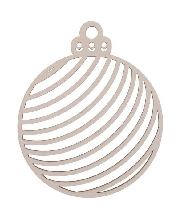 Drewniana bombka w paski biała. Średnica 8cm, wysokość całkowita 10cm. W opakowaniu 3szt