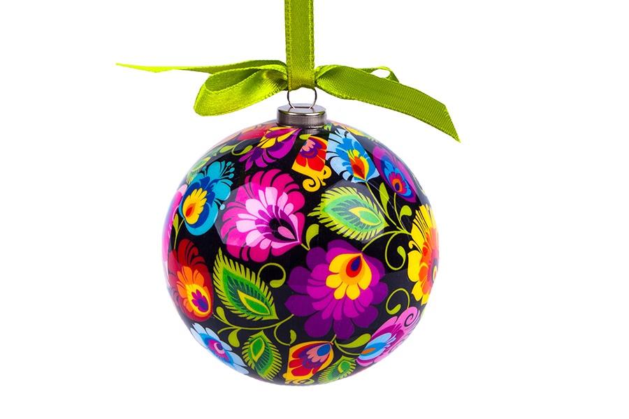 Plastikowa ozdoba choinkowa - łowicka bombka FOLK: wykonana ze styropianu dokładnie oklejonego papierem z nadrukowanym wzorem,