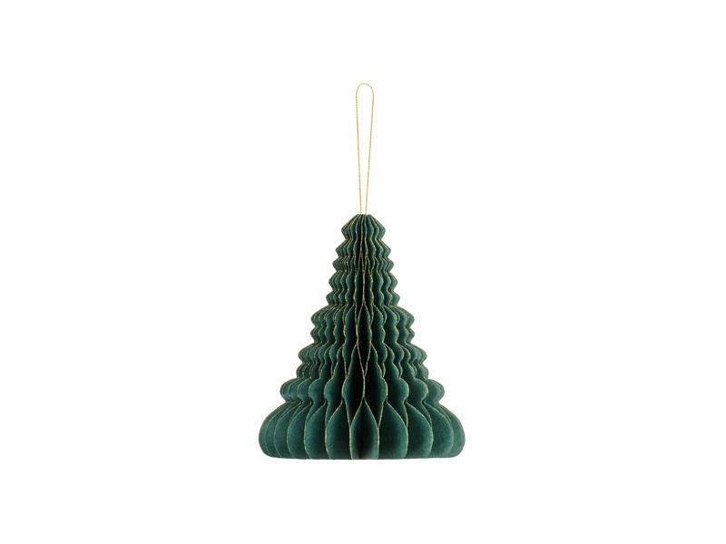 Bombka papierowa honeycomb Choinka w kolorze butelkowej zieleni, wysokość ok. 15 cm.