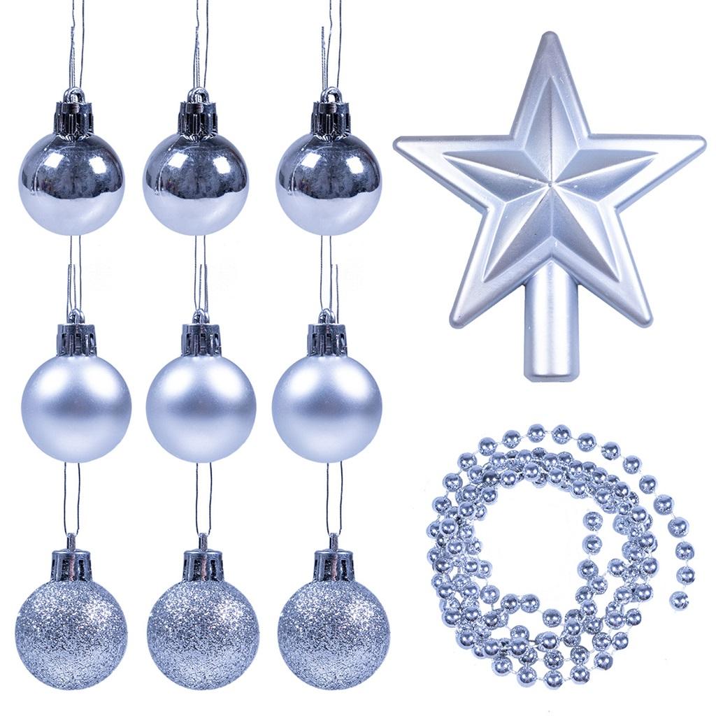 Opakowanie Bombki + gwiazda + łańcuch srebrne 11el